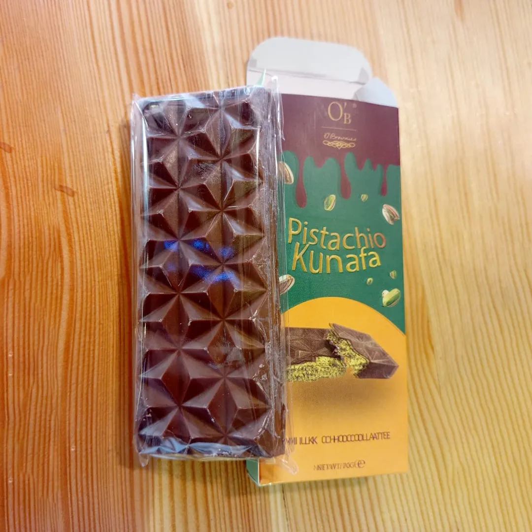 Indulge in the perfect fusion of Middle Eastern tradition and rich chocolate bliss. Our Pistachio Kunafa Chocolate combines the delicate, crispy layers of classic kunafa with the nutty richness of premium pistachios, all enveloped in smooth, velvety chocolate. Every bite delivers a harmonious blend of crunchy, sweet, and nutty flavors—a luxurious treat for dessert lovers and chocolate enthusiasts alike. Perfect for gifting, special occasions, or simply treating yourself to a taste of indulgence.